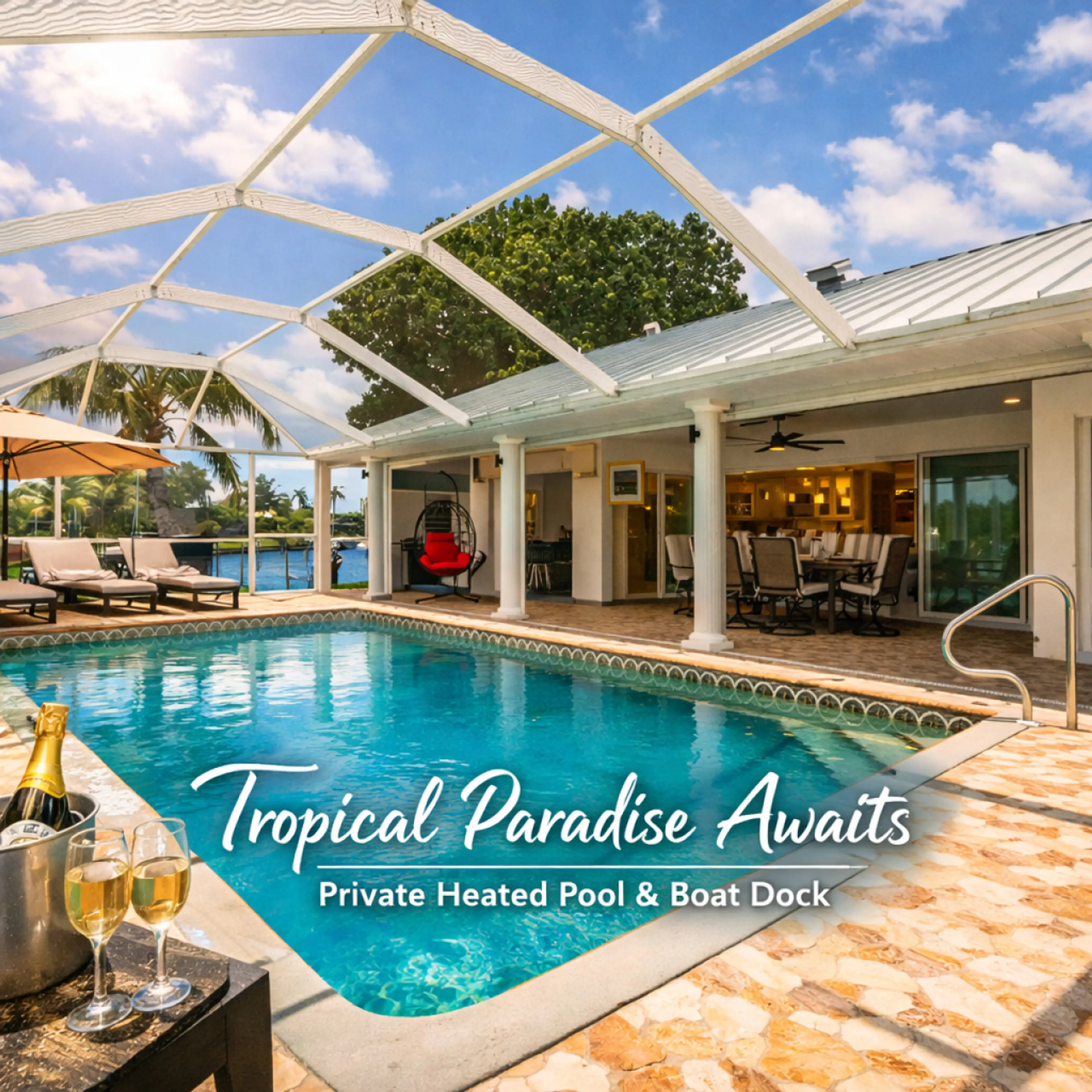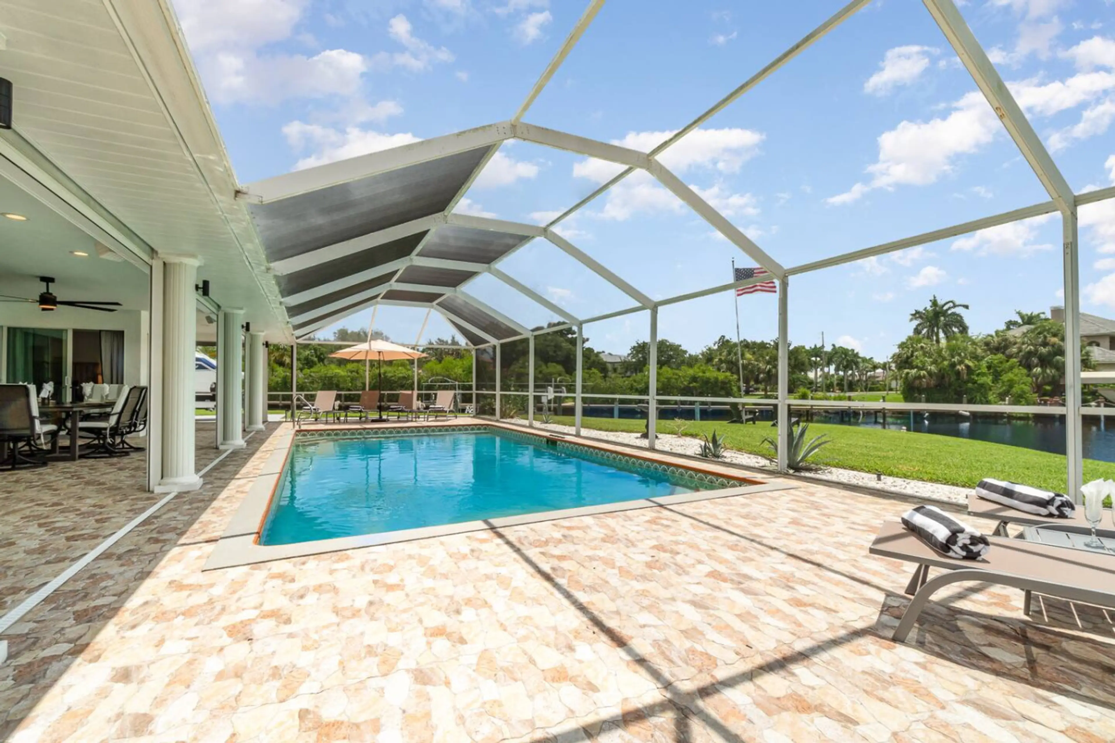 La Dolce Vita: Spacious 3BR Villa w/ Pool, BBQ, Easy Access to Beaches & Golf ✨ Tranquil Waterfront Villa w/ Pool, Dock & Near Beaches! ✨ Welcome to your peaceful waterfront oasis in Fort Myers — a stylish 3-bedroom, 2-bathroom retreat perfectly positioned on a private corner lot along serene cana...