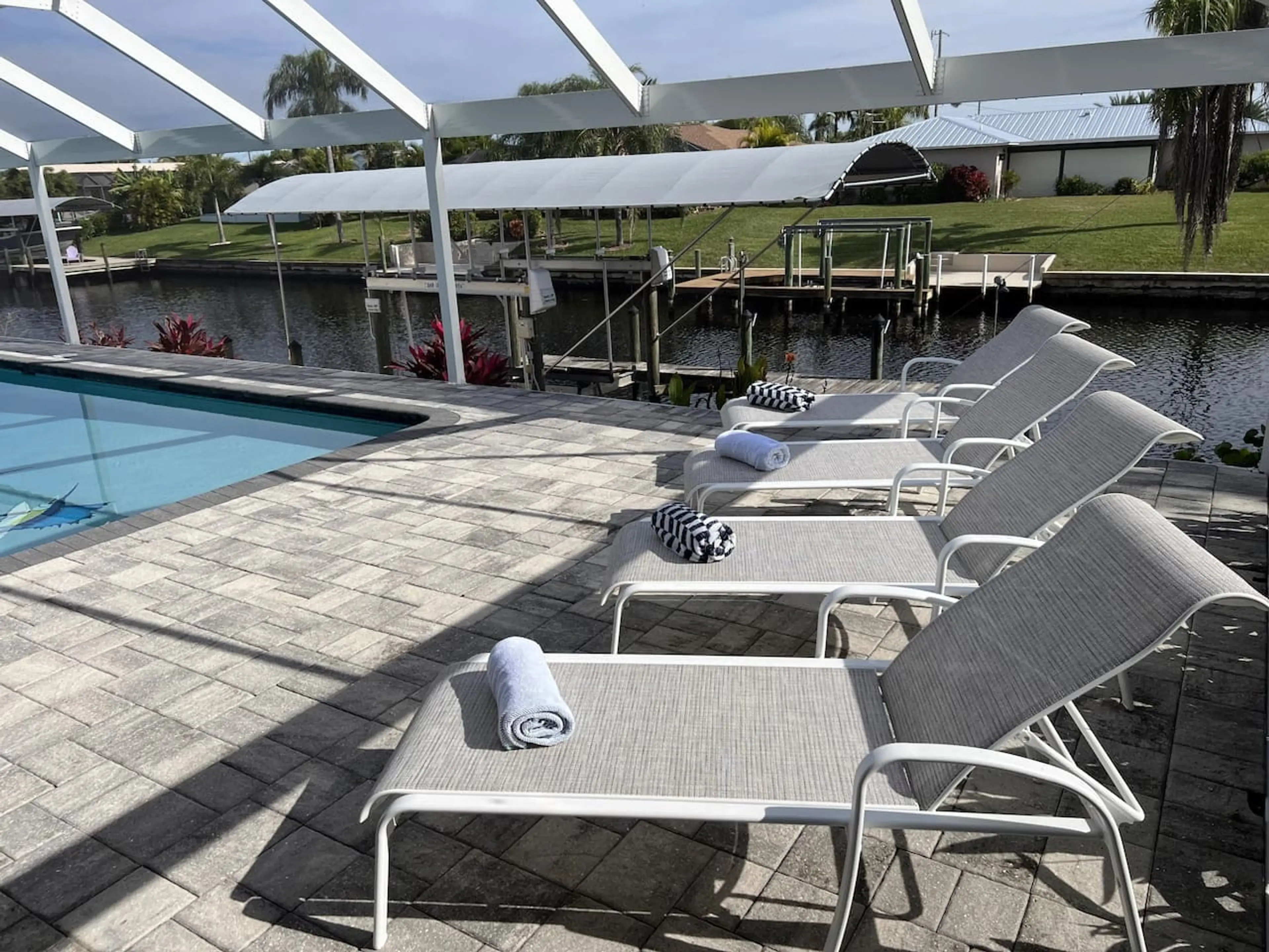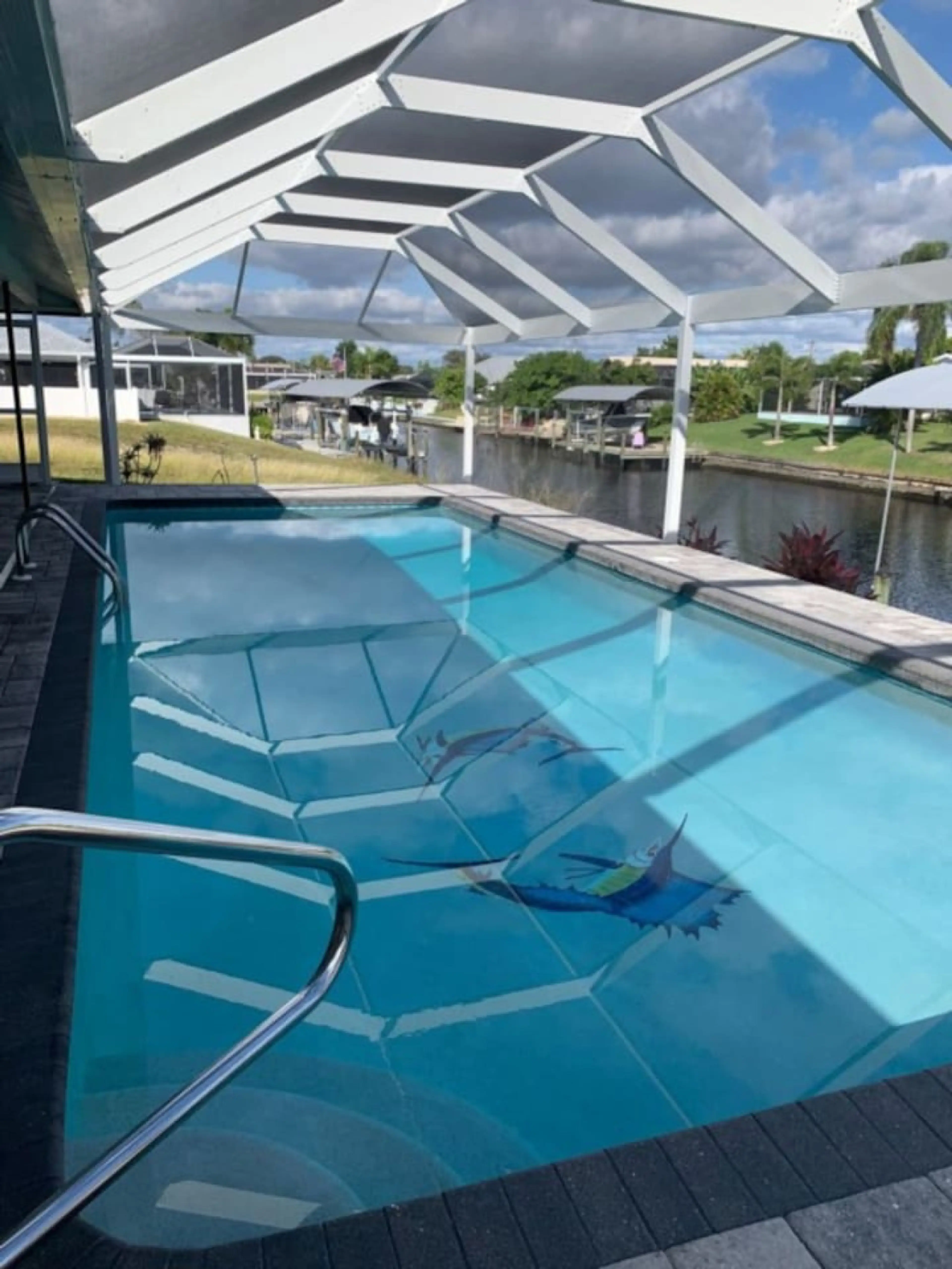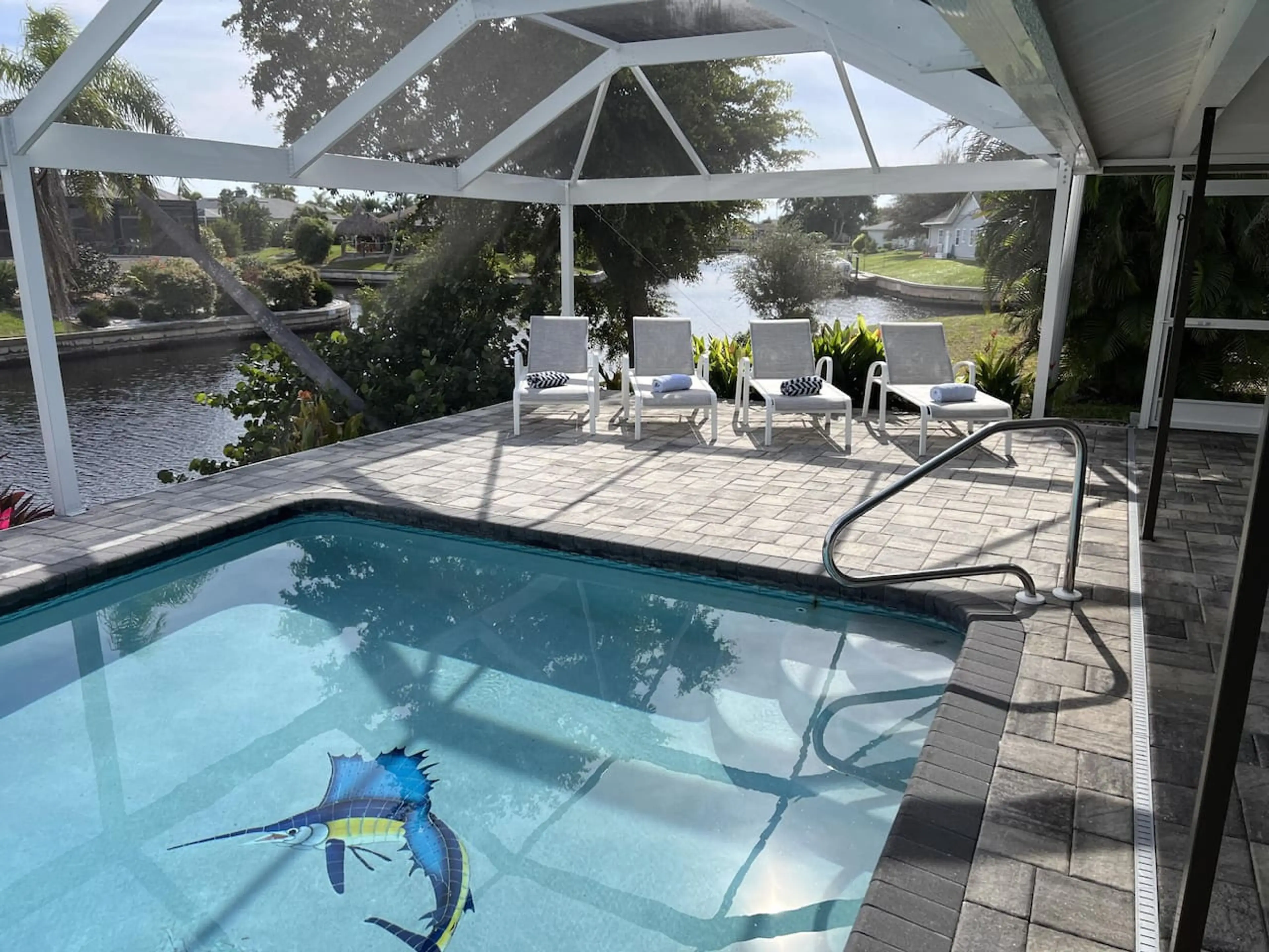 Villa Blue Marlin: Waterfront Villa w/ Private Pool, Dock, & Canal Views Welcome to Villa Blue Marlin, your luxurious retreat in Cape Coral, FL. This 1,832 sq. ft. villa sleeps 6 with 3 bedrooms (1 king, 1 queen, 2 twins) and 2 bathrooms. Relax by the private screened pool, cook in the fully equipp...